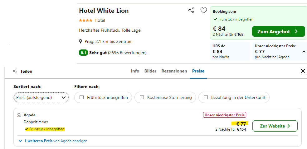 - Booking.com: Sehr gute 8.1 von 10 Punkten bei über 2.100 Bewertungen