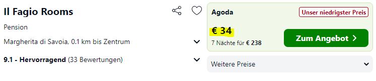 Weiße Trulli-Häuser, glasklares Wasser & kilometerlange Strände warten auf Euch in Apulien! Wir haben einen tollen Deal für Euch zusammengestellt. Zum günstigen Preis von nur 175 € pro Person bekommt Ihr 8 Tage im TOP bewerteten Il Fagio Rooms sowie den Hin- & Rückflug nach Italien. Möglich ist dies durch eine getrennte Buchung von Hotel und Flug. Die schönsten Ausflugsziele gibt es in unseren Italien Tipps.